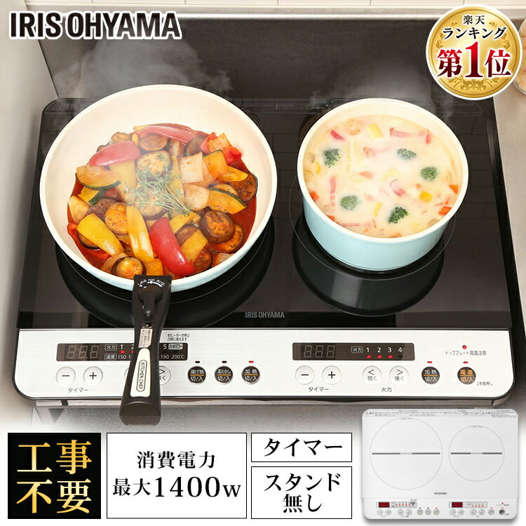 IHクッキングヒーター 2口 据え置き 据置 IHコンロ 台 工事不要 薄型 アイリスオーヤマ 新生活 一人暮らし (スタンド無し)送料無料 静音 卓上 揚げ物 フルフラット タイマー付き 1400W 省エネ IHK-W12P-B【SUTU】[MTR][abra][家電祭]